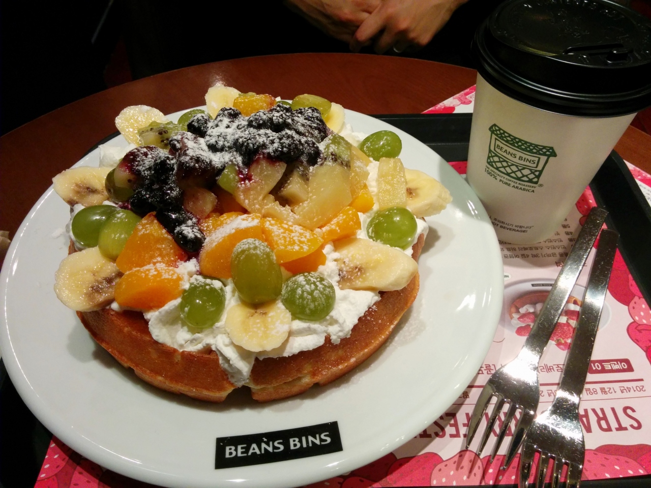 フルーツワッフルとコーヒーのセットをいつも注文します。