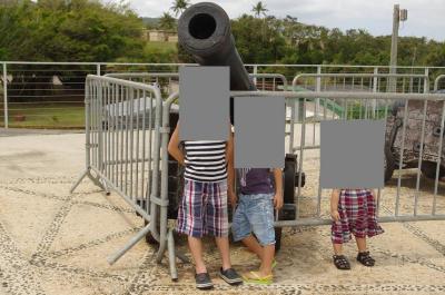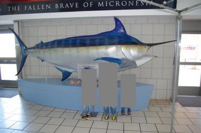 ロビーにあるブルーマーリンの実物大?の模型がこどもの興味をひいていました。