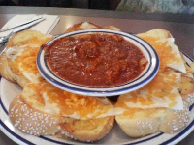 料理はチーズブレッドにミートソースのようなものをつけて食べる物を頼みました。