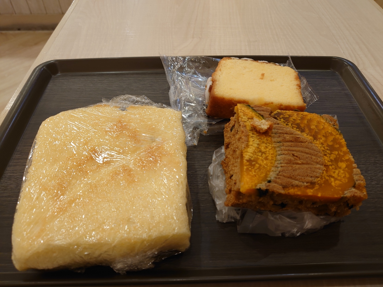 かぼちゃの蒸しケーキはかぼちゃの風味と味が強めな感じです。レモンのやつはちょっと食感がパサパサ気味です。かぼちゃのやつも見た目はしっとりしてそうでしたが、口の中の唾液がすぐに持っていかれるような感じでした。- 旅行時期