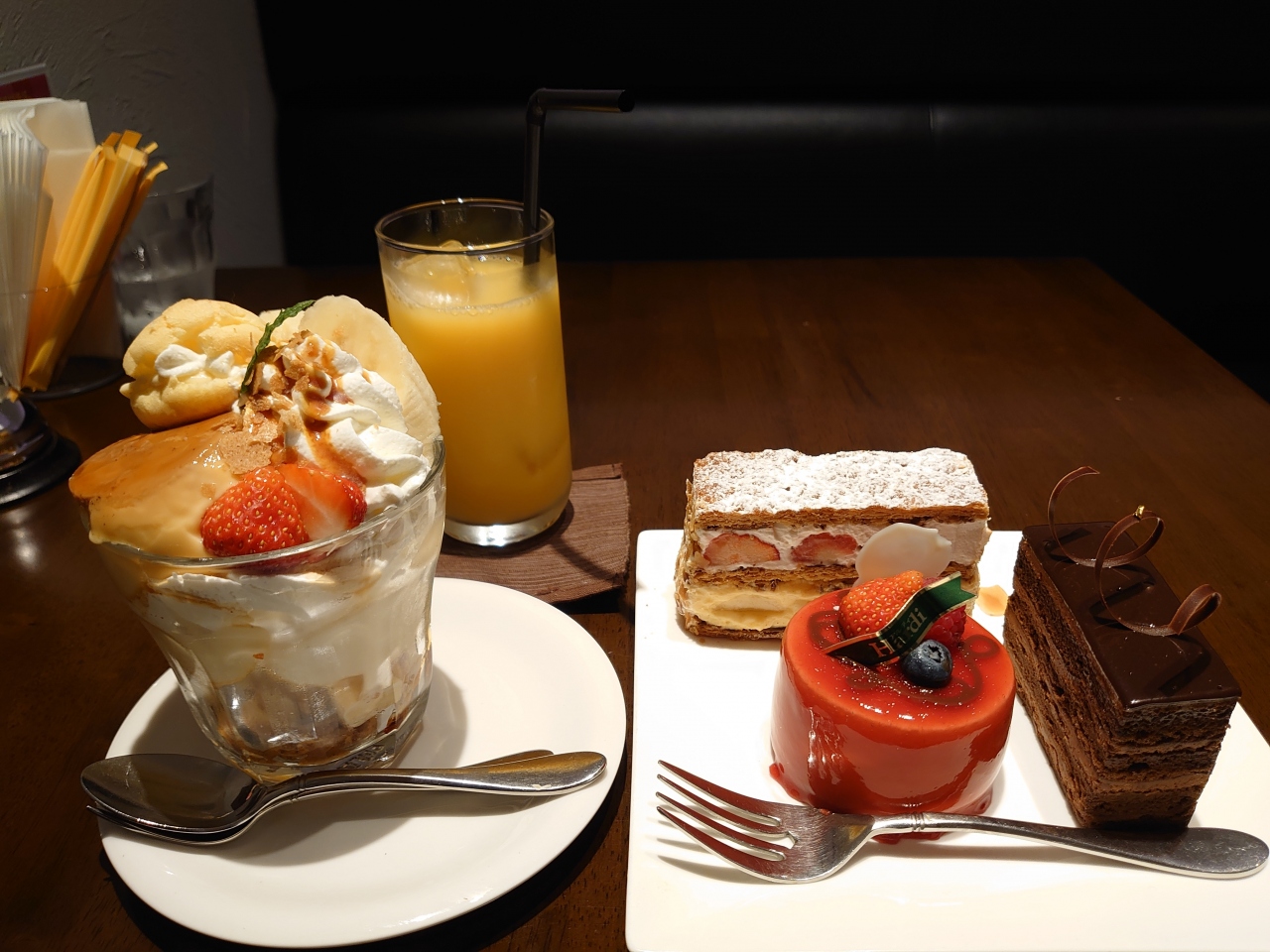 初来店ですが個々のケーキが高級感があるものでした。特にショコラキングのチョコの濃厚な味と見た目の洗練された高級感が最高でした。プリンパフェも器は小さいですが中にアイスクリームやパン生地なども入っていて結構ボリュームがあります。そしてイチゴの赤でコーティングされたベリー系のけーきですが、これもまた濃厚で高級感があるものでした。