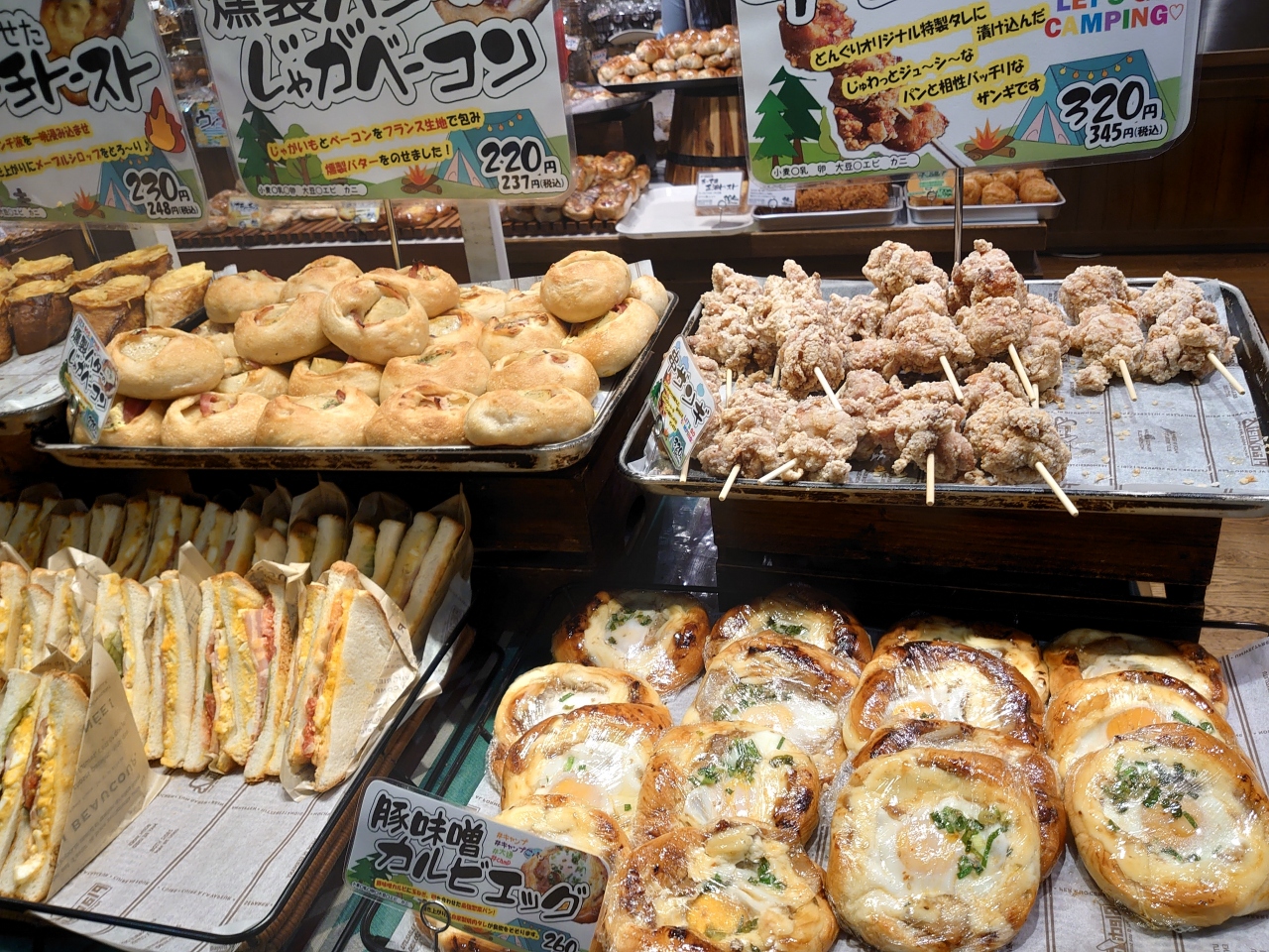 6月の暑い日でしたが土曜日ということもあって、多くの人がここのパンを求めて訪れます。どんぐりのパン屋は札幌圏内にいくつか店舗がありますが、個々の店舗に売られているパンが異なることがあり、中にはその店舗限定の商品もあります。でもちくわパンなど定番の商品は全店舗共通で販売されています。ここ大通り店は店舗も大きく立地も良いことから多くの客の来店があります。それゆえにパンの種類も豊富です。