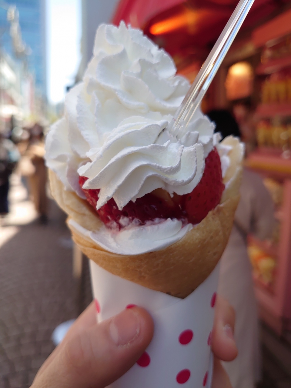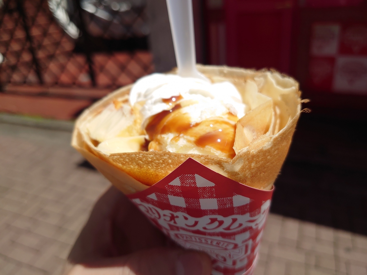 クレープの種類が多くて目移りします。連休ということもあり、それぞれのお店には長い行列ができます。クレープの価格もおおよそ500~700円代だったと思います。当然ながらトッピングなどのデコレーションが増えるメニューであるほど価格は上がります。あれだけ忙しいのに手際よくクレープを作り快い接客を行うスタッフさんに関心しました。
