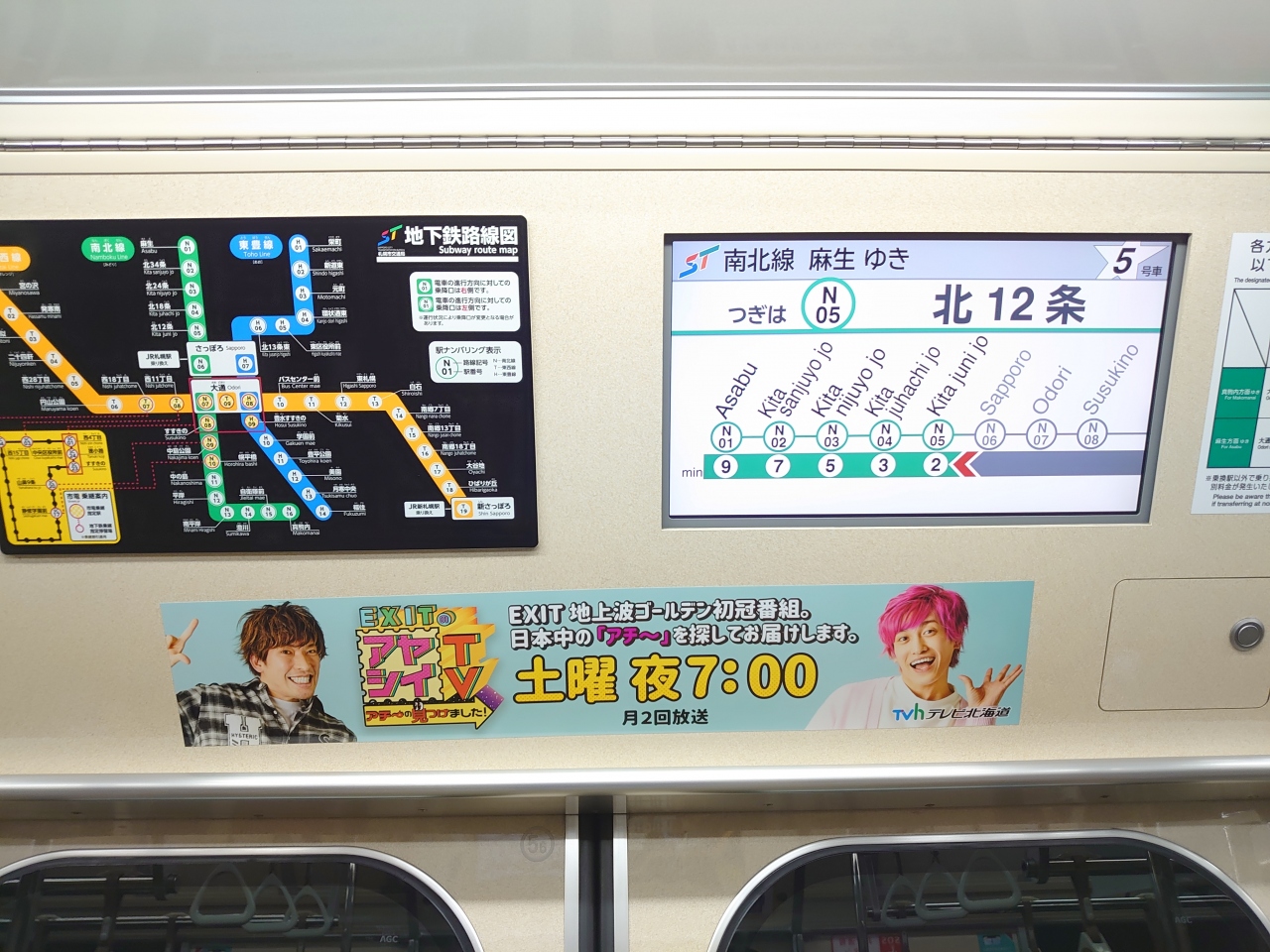 今回は麻生方面へ。一番浅い場所に路線があり札幌駅からすすきの駅と札幌市の中枢となる場所を通っているので使いやすいです。夜遅くの利用でしたが、乗ってる人がやはり多めでした。麻生方面は北海道大学があることもあって、見た目学生の利用が目立ちます。