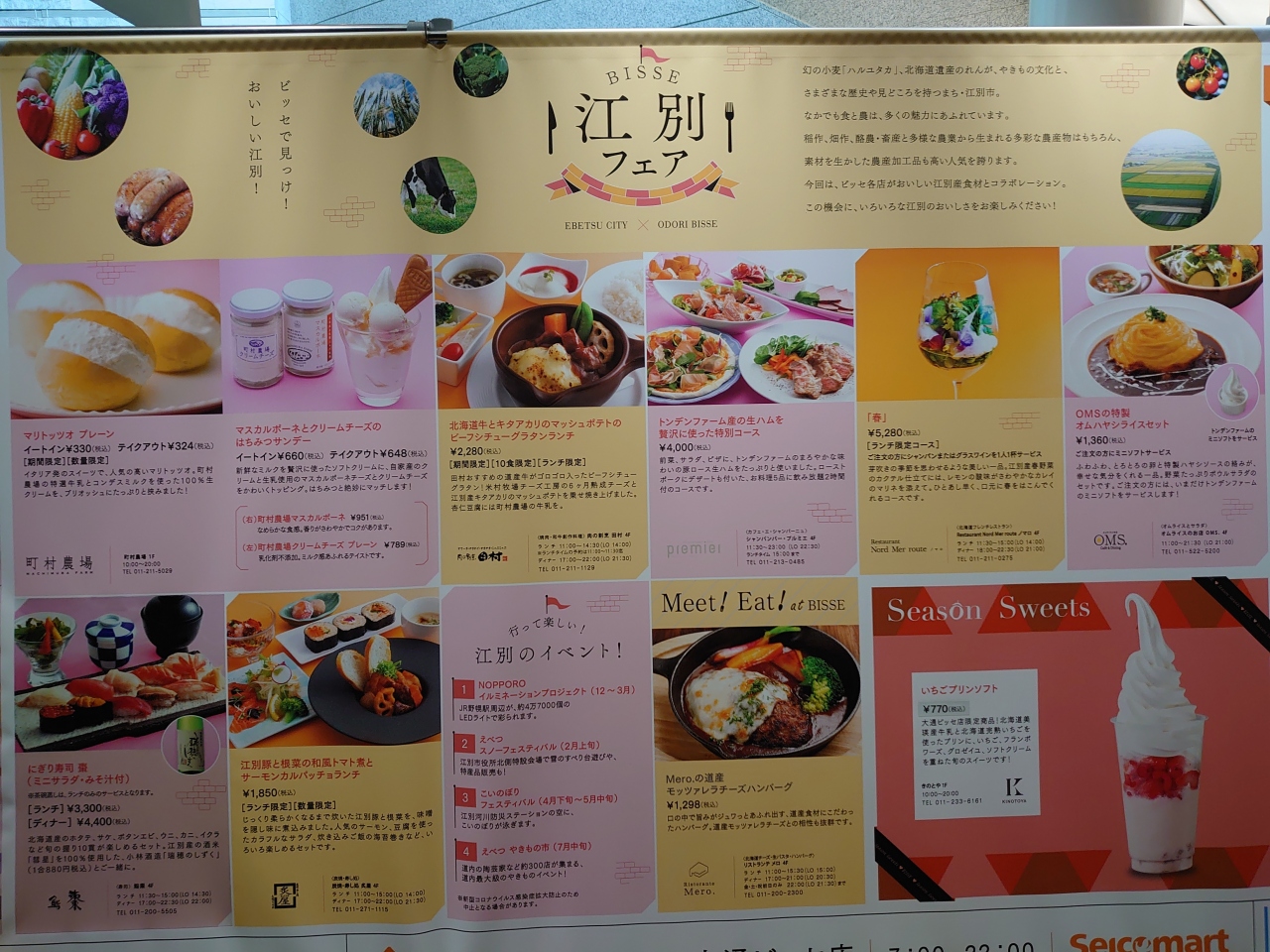 テレビ塔内部にあるお店であり、ここの一番の売りは大通公園を一望できるレストランであることです。3F部分ということもあり展望台よりは低い位置での展望となりますが、それでも晴れた日には大通公園の自然とビルの調和の取れた眺めです。夜に訪れればさらに夜景がきれいでインスタ映え間違いなし!!(たぶんね…汗)
