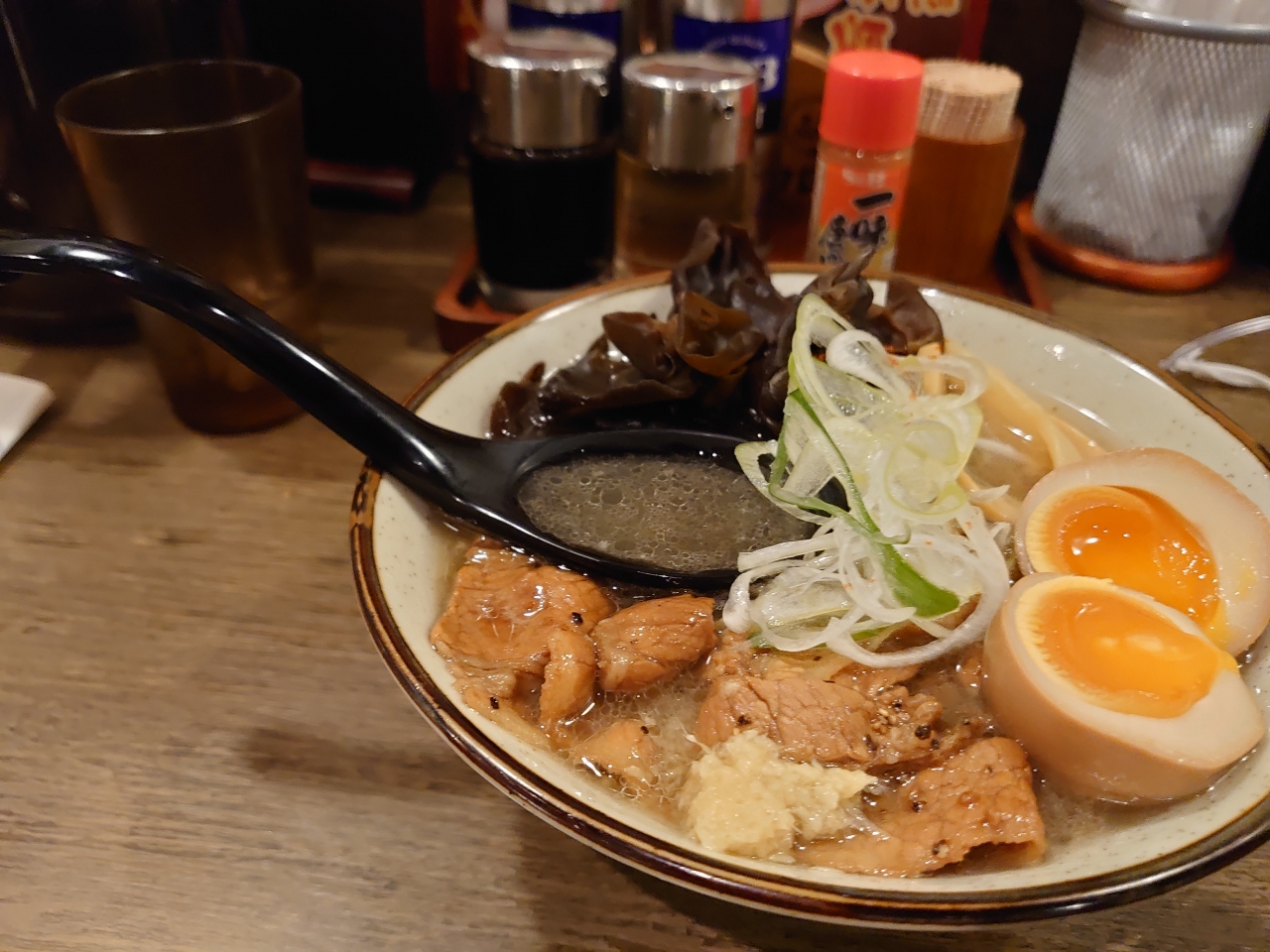 ミニサイズの塩ラーメンを注文しましたが、注文してからなんと5分くらいでラーメンが提供されて驚愕!超早い!!具材もりもりラーメンは一つ一つの具材の味が際立っていて、特に炭火であぶられた肉は肉の香りと風味にパンチが効いていて、食欲が増していきました。そして中身がとろとろの半熟卵も卵黄のとろけるような食感も良かったです。