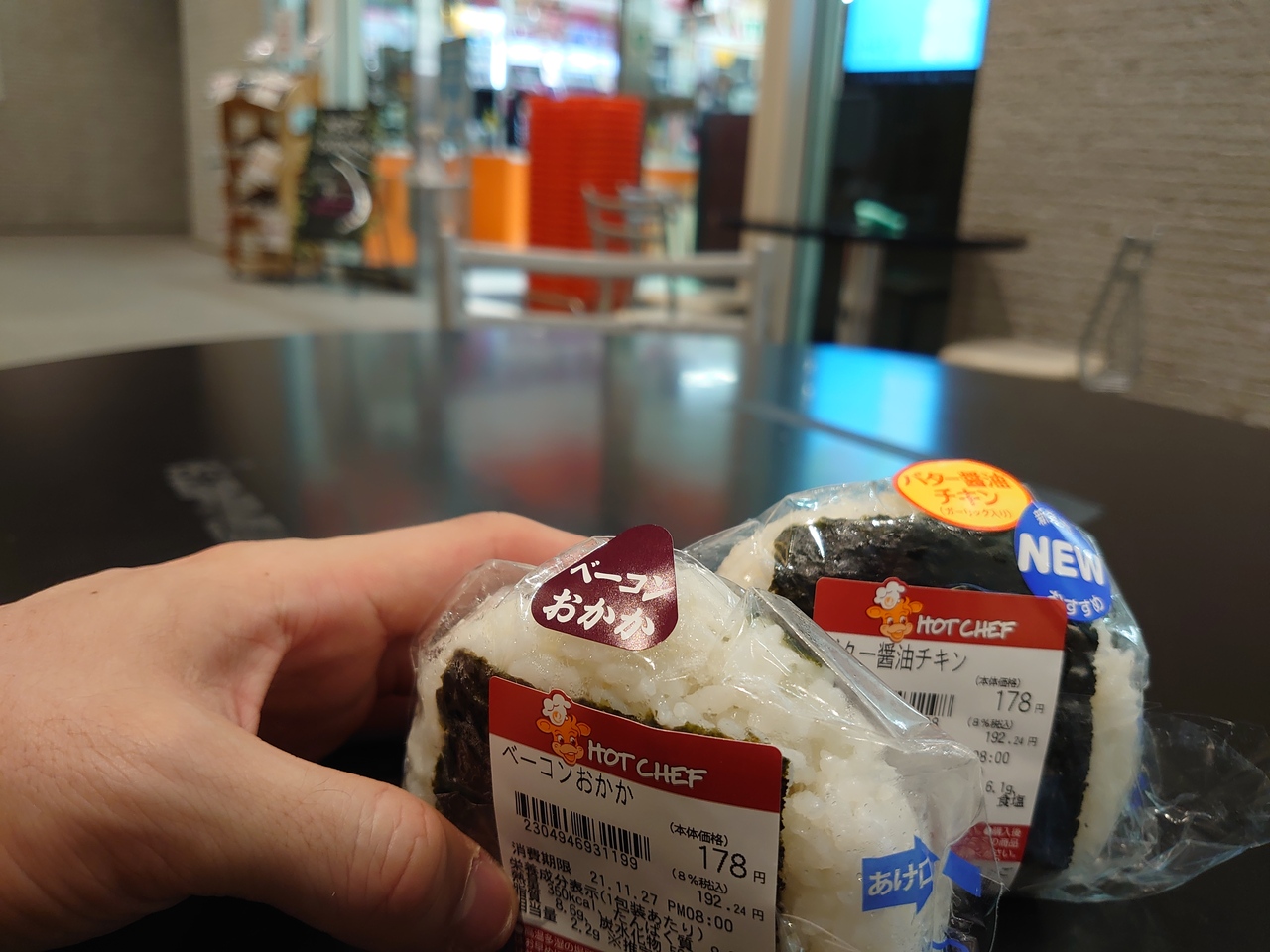 入口付近には座って食べるテーブルや椅子があって買った後お店の外でイートインできるのがとっても便利です。- 旅行時期