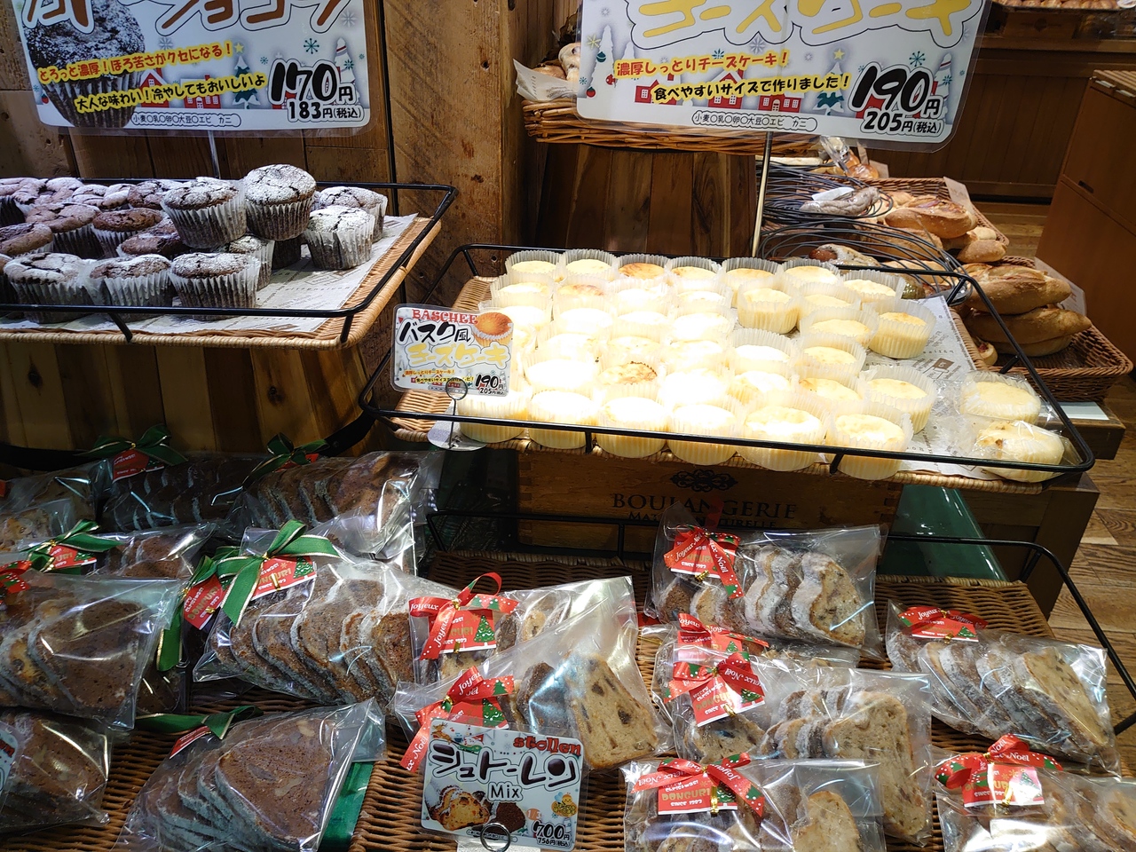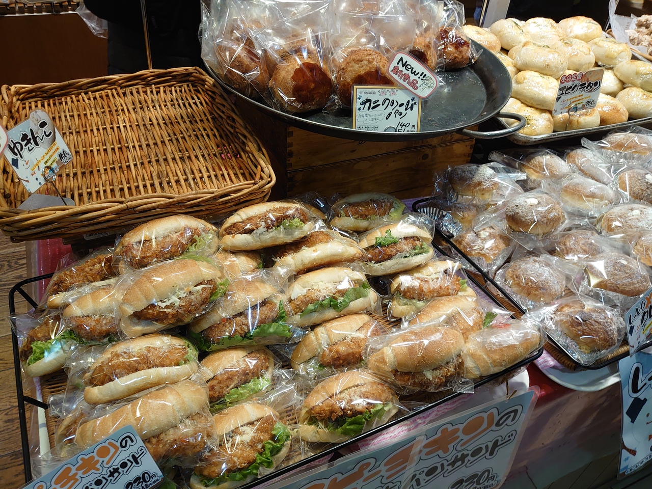 ここのパン屋さんも季節に応じた商品が販売されます。ここで売られているパンはどれもおいしいのですが、個人的にクリームパンがおいしいです。見た目は普通のパンですが、カスタードの味と甘みがとても良いです。そのほか、米粉のパンもいいですヨ(*^_^*)
