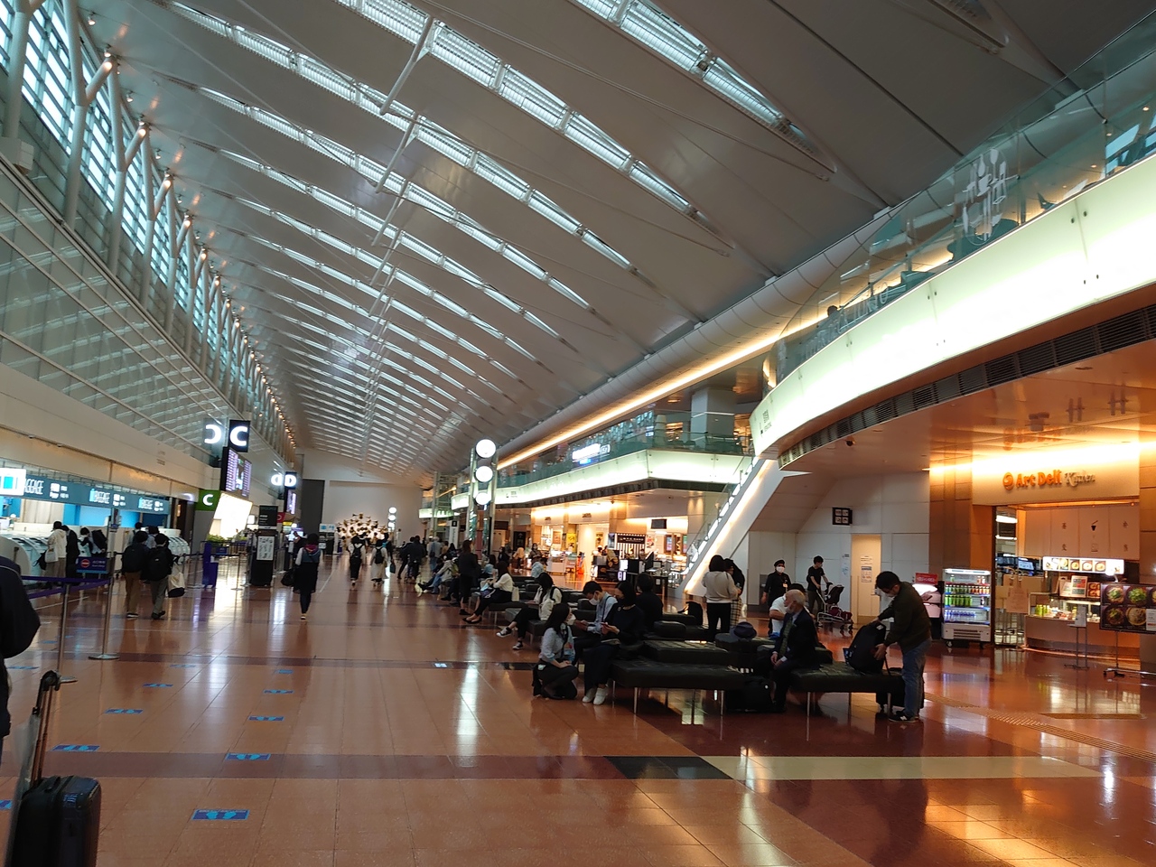 緊急事態宣言が終わり日曜日だったこともあってか、第2ターミナルはお盆時期に比べて混雑気味だったと思います。それでも搭乗手続きはスムーズに進むので、窓からは離発着する飛行機を楽しめます。その他、早朝から営業してるお店や飲食店も結構あり、搭乗時刻の2時間前くらいに来てもあっという間に時間を潰して楽しめることが可能です。