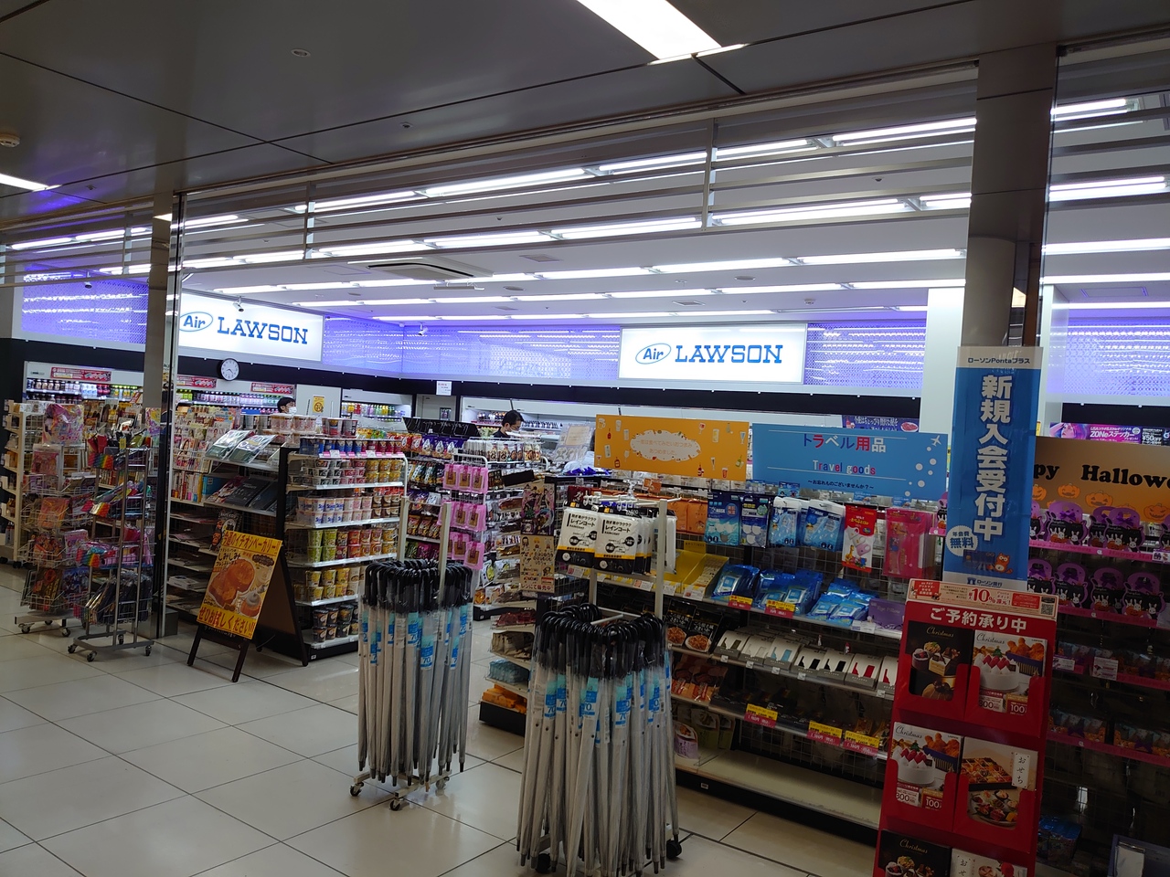 普通のローソンとは違ってお店の規模もちょっと大きめです。一部お土産が販売されています。お店の規模が少し大きいだけでなく普通のローソンと同じようにコピー機及びATMの機械も併設されています。そして場所的に改札口に近いのでお金を下ろして切符を買ってすぐにモノレールに直行できる場所にあるのも便利です。