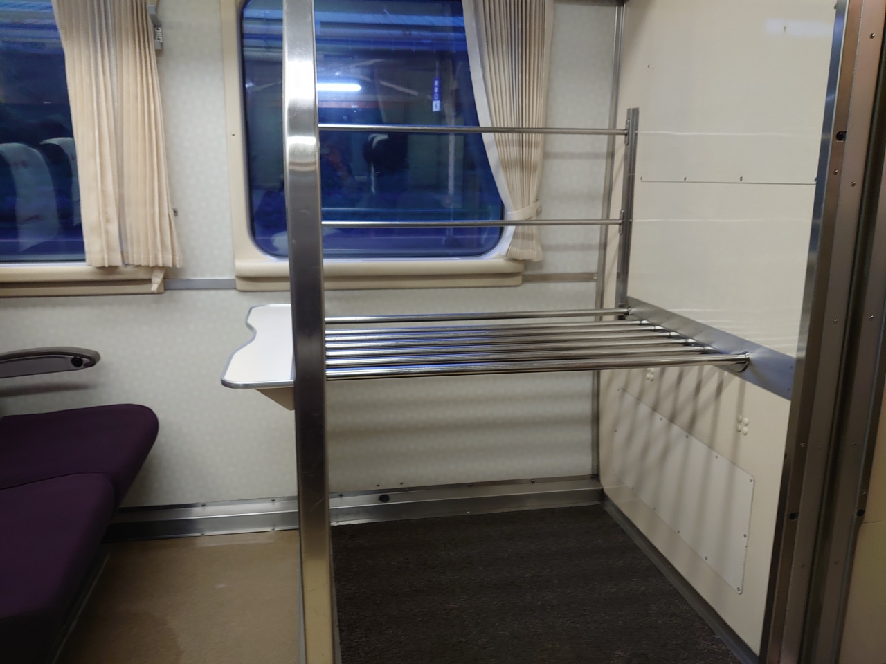 何度も乗っているので特筆すべきことはありませんが、片道は約3時間30分と長く同じ姿勢で座るのは案外つらいです。コロナ禍の中ほぼ空席だらけでした。前の座席を自分の方向に回転させて足を伸ばして座るのもありです。動画見るのもずっと手に持ってるのはつらいと思うので、100円ショップなどで売っているスマホスタンドを持っていくといいでしょう。