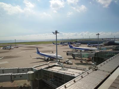 第二ターミナルはANAの牙城です。比較的新しい機材も見ることができます。日曜日の早朝ではあったものの人はそれほどおらずチェックインもスムーズに進みます。1年前にコロナが流行りだした時とは異なりほとんどの店が営業中で食事や買い物をほぼ通常通り楽しめました。
