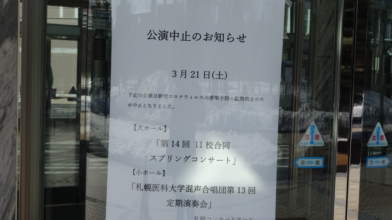 中島公園に来たついでに、キタラにも寄って見ようと思ったのですが、あいにくコロナの影響でここも閉鎖されてました。自動ドアのポスターには公園中止の旨の貼ってあり、音楽のCDなどを見たり気に入ったのを買おうと思ったのですが、泣く泣く断念(>_<)
