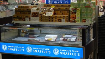 札幌駅西口改札を通過したら、そのすぐ横にあります。一部の商品は一般のコンビニで売ってるものと変わりませんが、北海道のおみやげ品を多く販売しています。入り口付近はチーズケーキが販売されてますが、運がよければ店員さんのデモンストレーションと通じて試食ができるかもしれません。