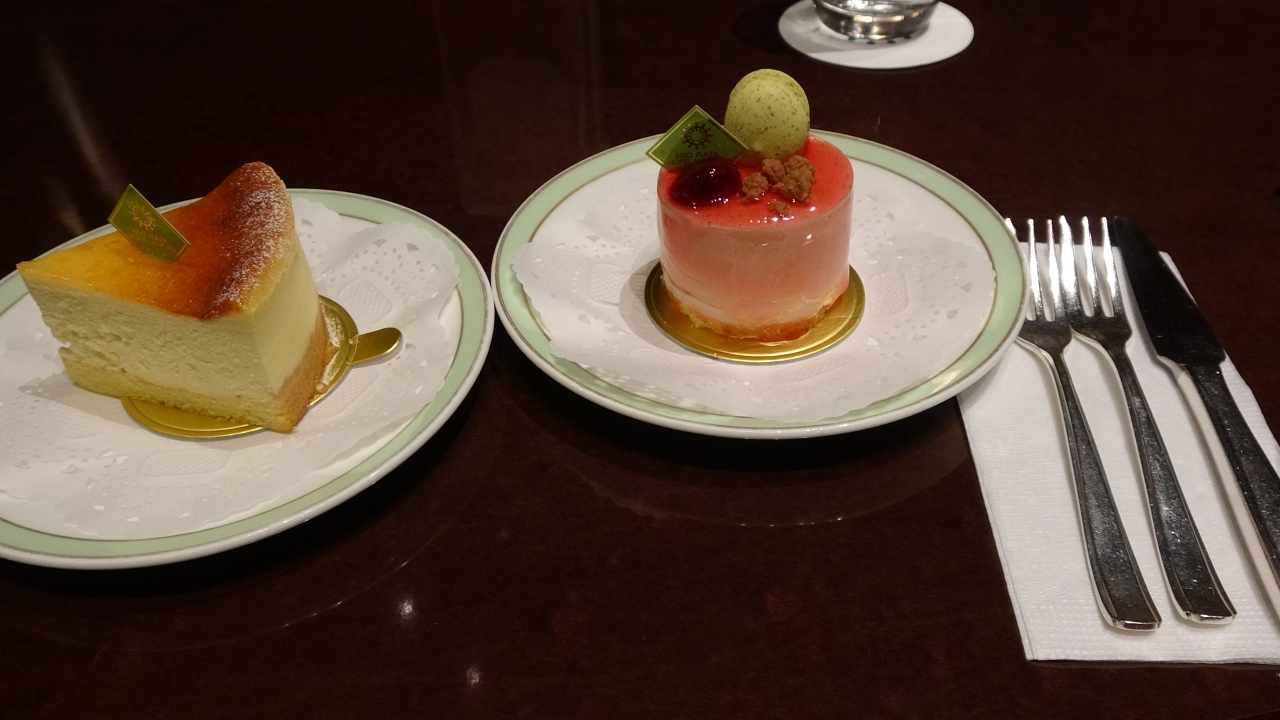 前回訪れた京王プラザホテルのペストリーブティックポピンズを再度訪れました。チーズケーキともう一つ名前は忘れたけど新作のピンク色したケーキを注文しました。店舗内部はまさに大人向けの作りになっており、ケーキを召し上がる際になんとナイフまで用意してくれました。