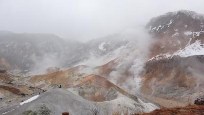 登別は温泉街として有名ですがその温泉と関連して有名なのが環境省所轄の地獄谷です。天気が悪い事と今の時期新型コロナウイルスの影響もあってか三連休中であるにも関わらず人は少なかったです。