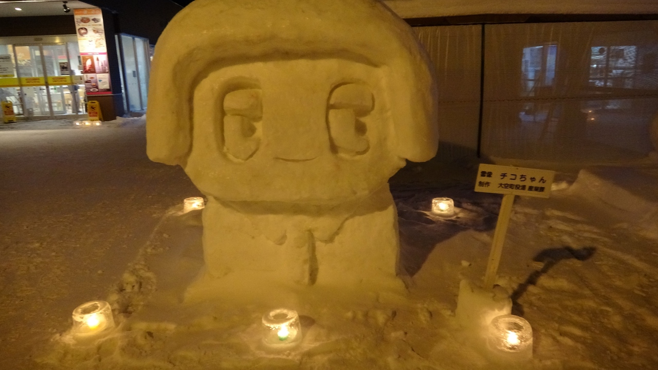 そしてこの道の駅にはチコちゃんや他の何らかの雪像が作られてその横にキャンドルライトが並べられておりとても幻想的でほっこりした雰囲気でした。確か雪で作られた王座もあったと思うので防寒具を着ていればちょこっと座ってみたかった!(^^)- 旅行時期