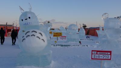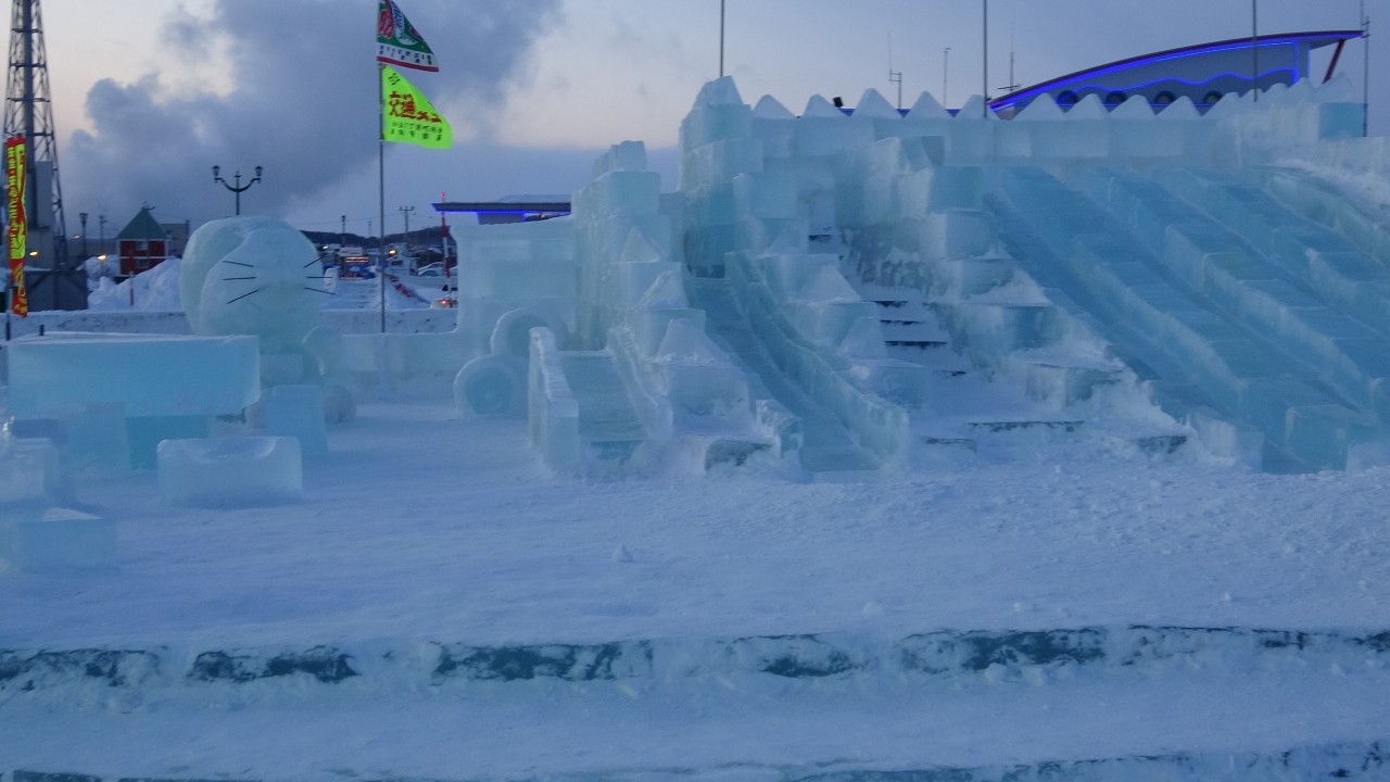 土曜日に現地を訪れてみましたが、規模は思ったより小さく大人向けというにはちょっと物足りない感じです。本来こちらの祭りは4日間行われるものらしいのですが、今年の流氷祭り開催前は降雪量が少なく温かい日が続いたため開催期間は2日間のみになりました。