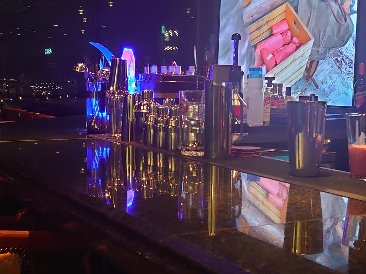 最上階から見る旭川の夜景はあまり派手に光っているわけではなく、宝石箱をちりばめたように綺麗でした。加えてお店の中のネオンも大人っぽい雰囲気や綺麗な夜景と相まってとても綺麗でした。- 旅行時期