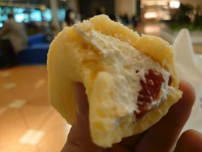 バナナといちごのオムレットそれぞれ一個ずつ注文!何も生クリームがたっぷりと入っており俺好みでした。でもいちごのオムレットの方はバナナのやつよりも、ちょっと小さめで売られています。個人的にはもうちょっと二つとも大きさが欲しいところですが、甘すぎずしっとりとした生地と生クリームの相性が非常に良いです。
