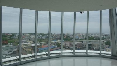 この前に行ったときに展望台があるとも知らずに、1階部分しか見学してませんでした。情報を入手しておうむ産業まつりに便乗して訪れることにしました。高さはビルの7F建てに相当する高さのようで、雄武町の市街地とオホーツク海を高い場所から望むことができます。