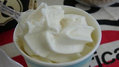 こちらのアイスクリーム屋さんでソフトクリームを注文しました。ソフトクリームはやはりミルク味しかありませんが、ミルク味しかないことがここのアイス屋さんの特徴でもあり強みであると思います。カップアイスも販売されており、そちらも美味しいけれどミルク味が苦手でない人はソフトクリームの方をお勧めします。
