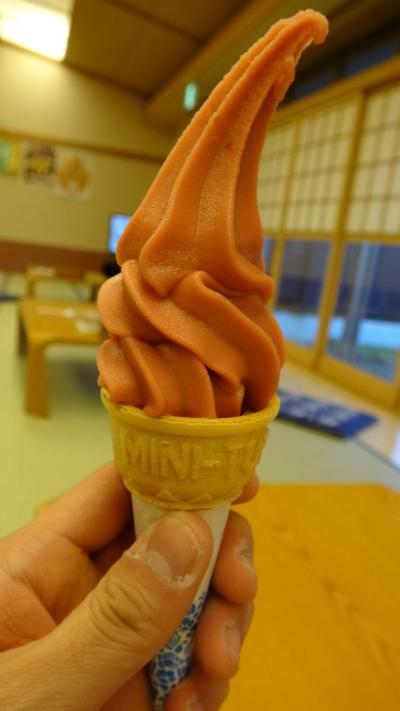 内部にはユーフォ―キャッチャーゲーム複数とコイン式の電動マッサージチェアー、食事をできるお座敷があります。 食べたい食事を食券で購入する仕組みです。食事処ちゅーりっぷで食べようと思っていたのでここでは小さいサイズのいちごアイスで済ませました。- 旅行時期