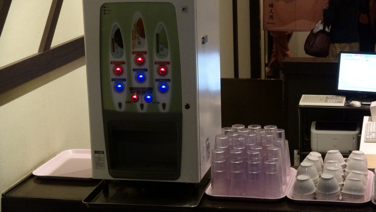 まず第一印象としては内装が江戸風の日本らしさを感じることのできる作りになっており、心身ともに和むことのできる温泉施設になってます。入場料を見たときにびっくり!1500円と言われた時には「え!?」って思ってしまった。しかしその代わりに冷たい水やお茶に限り無料で飲めるサーバーがありました。