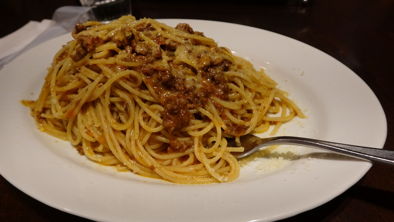 今回は赤ワインで煮込んだ牛肉のボロネーゼを注文!味は薄い感じはしたけど大人の雰囲気を味わいながら美味しくいただけました。