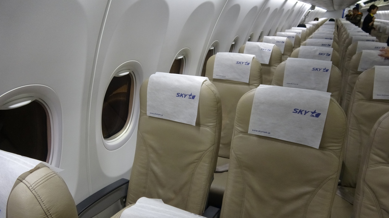 スカイマークはどの路線もボーイング737-800で小型ジェットであるが搭乗はスムーズに進みます。他の大手航空のようなプレミアムやファーストのようなシートはりません。
