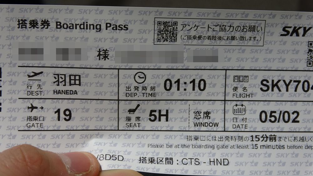 GW期間中に新千歳から羽田まで夜間の臨時便があり値段が7000円代と破格であったため速攻で購入!
