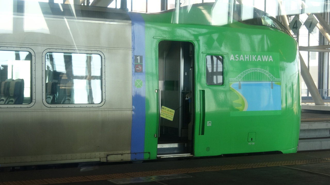 乗り継ぎに変更してこちらの車両を利用することにしました。札幌から旭川までの特急は頻繁に走っていますので、旭川まで行く人も乗り継ぐ人も利用したい時刻の列車を選びやすいのではないでしょうか。