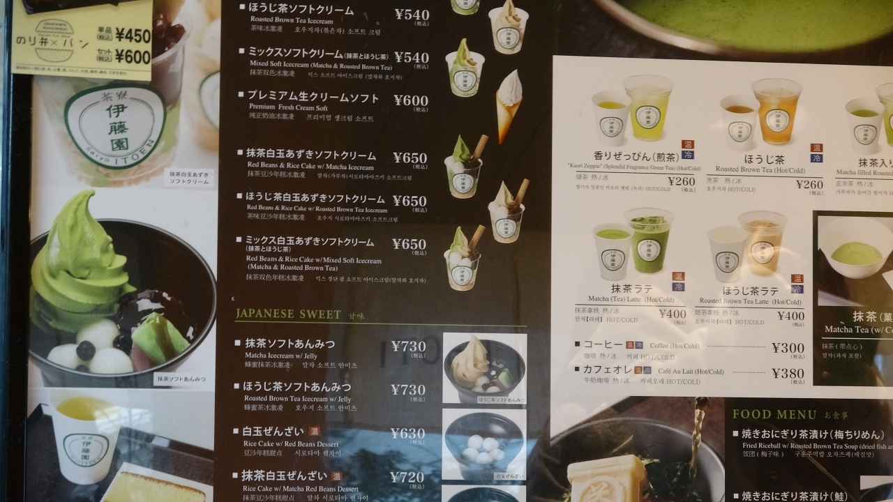 抹茶のアイスクリームを注文しました。今まで伊藤園の製品はペットボトルに入った緑茶しか飲んだことがありませんでした。江戸小路のそばにあります。商品は緑茶を使ったものが主要に売られてますが、他にもあります。伊藤園のそばに日本風のテラス席がいくつかあるので、それを利用して食べようと思いましたが以外にも利用者が多い!泣く泣くカウンター前のイートインで食べることにしました…