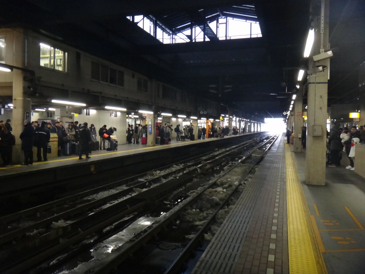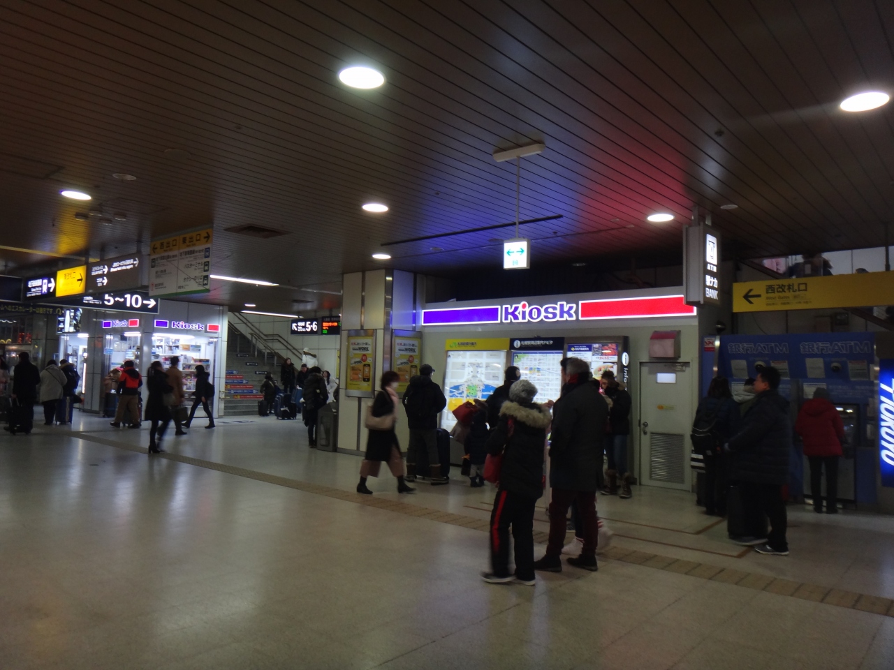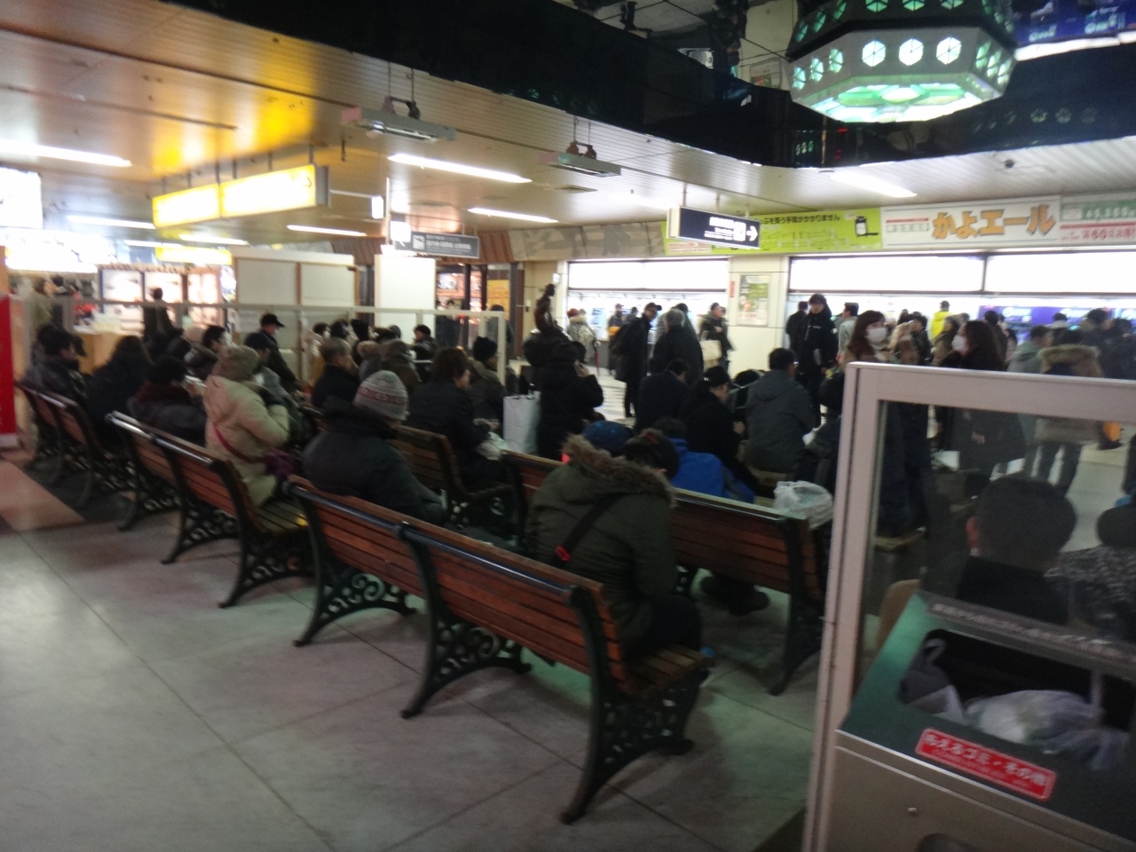 運航の遅れや途中で運休することを心配しましたが何とか札幌駅に到着!改札口周辺や駅構内にベンチがありますが外から冷気が入って来るので寒いに尽きます。本当に寒い日はデパートや地下と直結してるのでそこでやり過ごした方が無難です。お店巡りで時間をつぶせるし寒いことはほとんどないです。