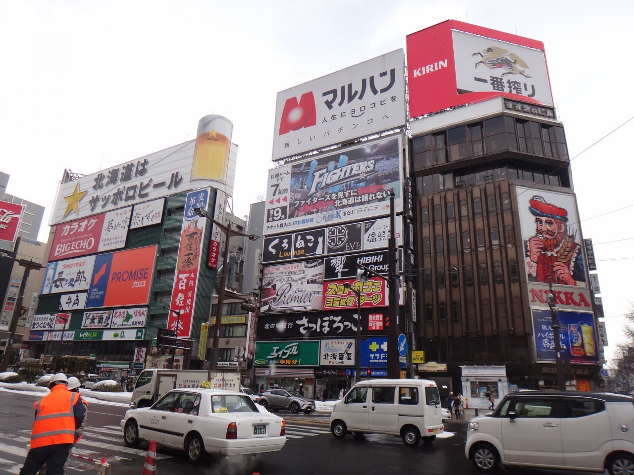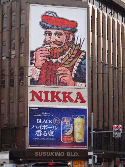 日本3大歓楽街のひとつである札幌ススキノ。飲食店がひしめき合い暗くなるとネオンが光はじめ大人の時間が始まります。ネオンはやっぱりキレイで、その代表がニッカの王様のネオンです。背景色がカラフルに変わっていきます。昔からずっと周りのネオンが変わっても、このニッカの王様のネオンだけは変わることなく現在に至るまでススキノの街を見守ってきまと同時に待ち合わせ場所のシンボルにもなってます。