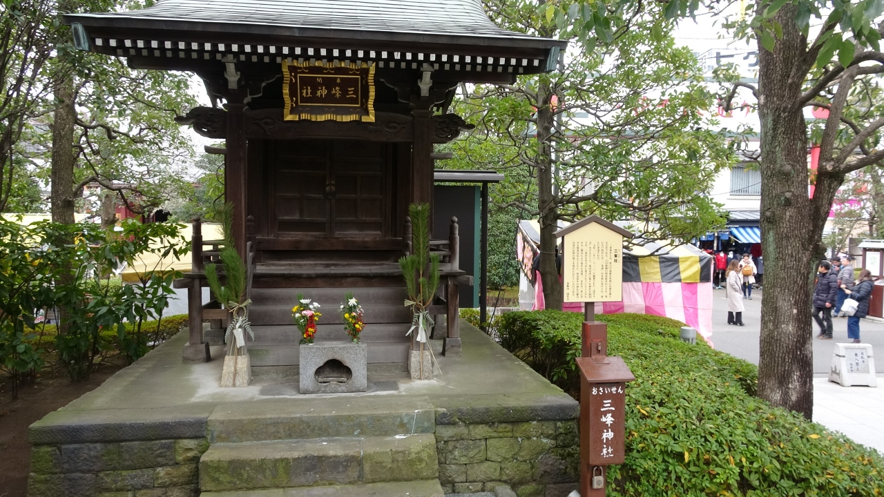 三峰神社のように小さな神社が浅草内部にいくつかあります。看板の記載によると浅草寺誌という書物に「各所に神社が作られた」とのことです。三峰神社もそのひとつであるそうです。ただ残念なのは、戦火によって焼失してしまったことです。だけど浅草寺誌も文化10年(1813年)に編纂されたものが残っていたこともスゴイです。
