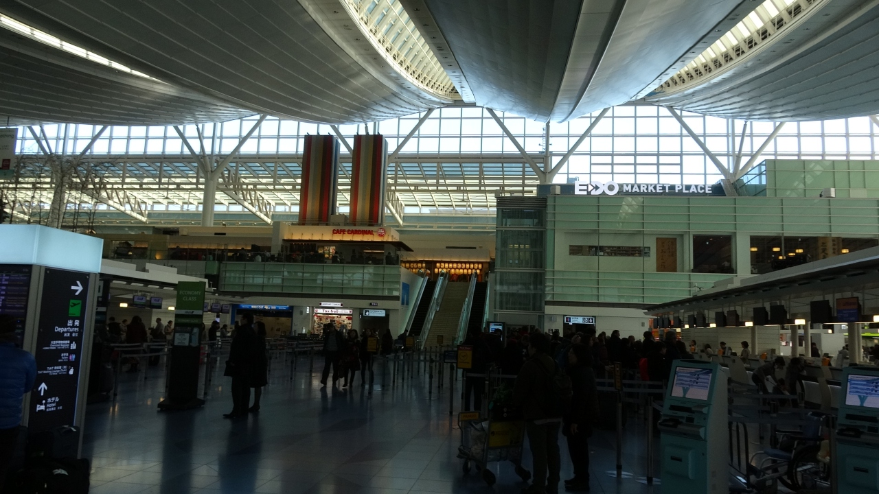 改札口から直結してます。ターミナルは第一と第二よりも広いです。今まで第二のほうが広いと思ってました。1Fはほとんど周囲を隔てる壁などがないので混雑しててもスムーズに行きたい航空会社のカウンターなどに行けると思います。2Fに上るとターミナル全体を見ることが出来ます。