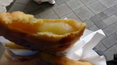 さつま芋をベースにしたクリームがサクサクの生地とマッチしてます。作りたてだったので中のクリームで舌を火傷してしまいました。それでも食べに訪れる価値はあると思います。このお店のそばにはベンチがあるので買ったらすぐ座って召し上がることもできます。味はさつま芋のクリームだけではないので、訪れる予定のある人は他の味も試してみてください。