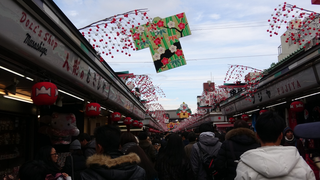 浅草は確かに有名な観光名所ですが、混雑を避けたいなら絶対に1月に訪れない方がいいです。どこのお店も行列ができていて、十分に楽しむことは出来ませんでした。訪れてる人は外国人が多かったです。- 旅行時期