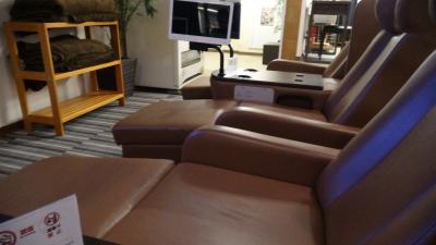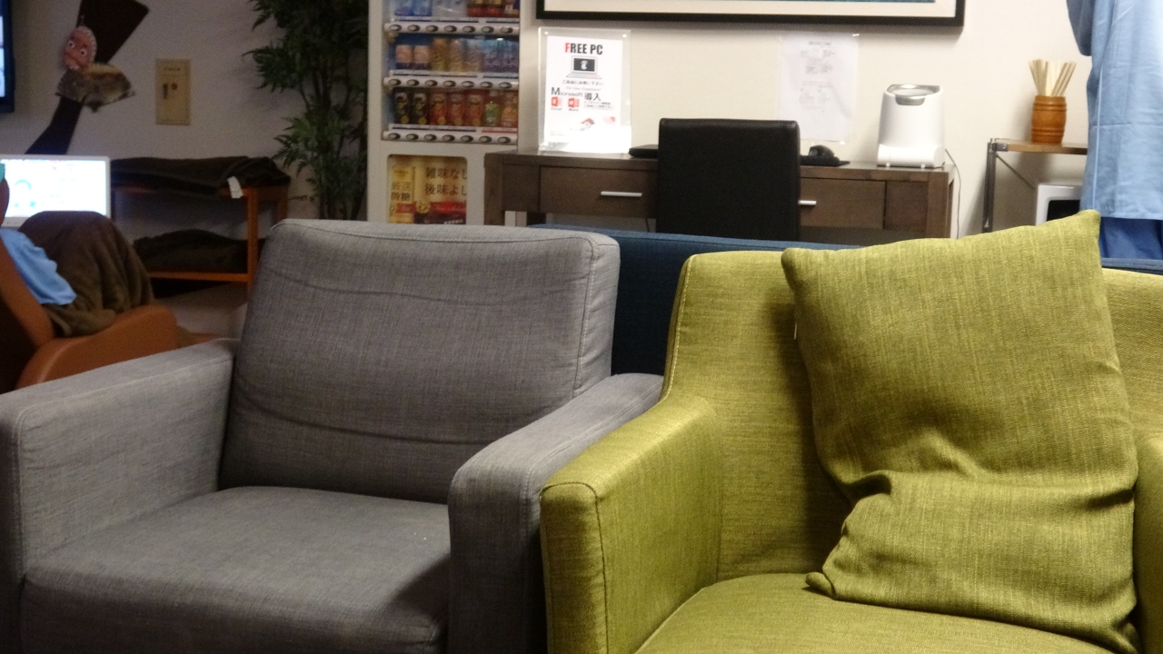 ホテルは個人的に2より3の方が快適に感じるのではないでしょうか。2は何だかあまり開放的でなくせせこましい感じがしました。恐らく2は通路が狭く常に人と隣り合っており距離が近めなせいか、3の方が広々としてると感じたのだと思います。リクライニングの部屋にPCが1台のみ設置されてます。しかしPCはパスワードが設定されているので、解除したいときは受付の人に申し出てください。