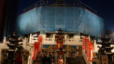 この媽祖廟は特に荘厳さを感じさせる中華街の中にある観光スポットです。いつもは線香の香りがするはずが、俺が来た時は何かを燃やしてる焼けた臭いがしました。しかも修繕作業中なのかブルーシートで囲まれて、周りを囲うように飾られてた提灯も取り外されてちょっとガッカリしました。異国情緒も何も感じとれず雰囲気が台無しー((((;゚Д゚)))))