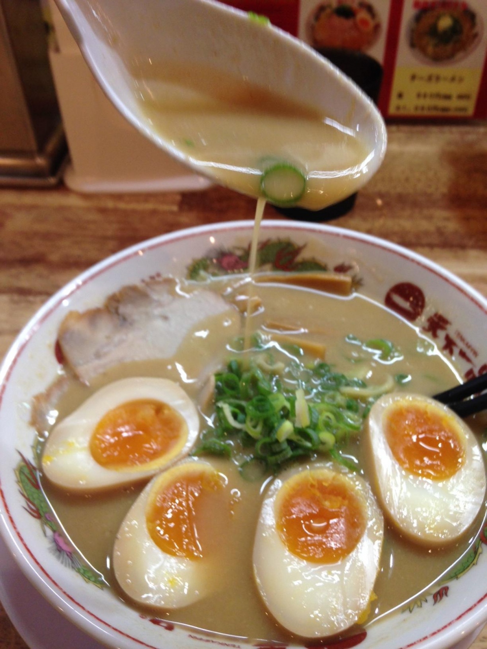 - こってりを注文しましたが、煮卵との相性が最高!!スープは全部飲み干しました。