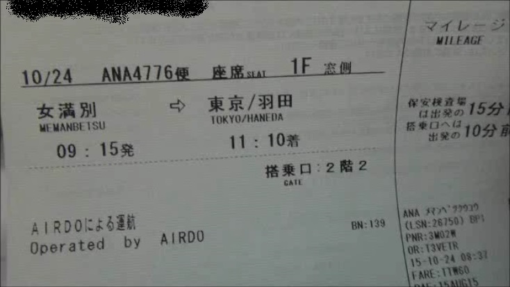 10、11月になると網走管内の高校生たちが一斉に修学旅行に行く時期になるため、通常のairdoにはない午前の早朝便が現れる日が年にいくつかあります。オレはANAのマイルを集めているためANAのHPから予約し、午前中の便に乗って東京に少しでも長い時間滞在できるよう女満別発の券を手に入れました。