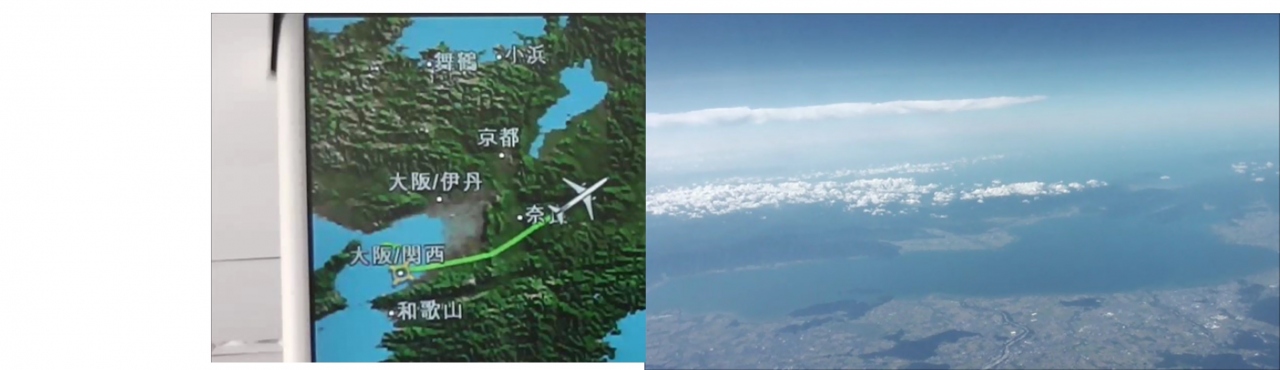 ・飛行機の座席が大きく足元も広い。