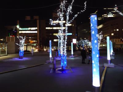 札幌駅南口広場は月や季節に応じていろいろな催し物が開催されます。夏場になればビアガーデンが出店します。加えて北海道のテレビ局が札幌駅前から放送する場所として、いつもではありませんが使われる時があります。そして今回みたいな冬は特にイルミネーションで装飾され光り輝いてキレイです。