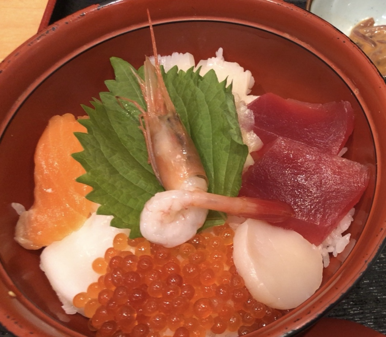 シンプルに海鮮丼を注文しましたが、イカソーメンや天ぷらとセットになった丼もあり 飲んでいる人も多かったようです。