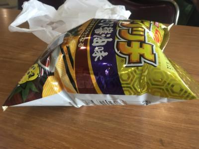 清水SAで買ったポテトチップスの袋。すでにかなりの膨らみです