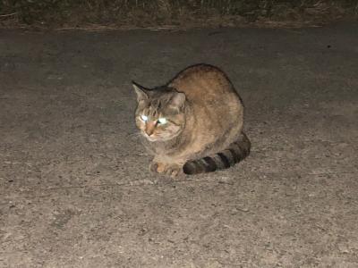 焼き魚の匂いに釣られて、野良猫が寄って来ました。真っ暗闇の中、突然、家...
