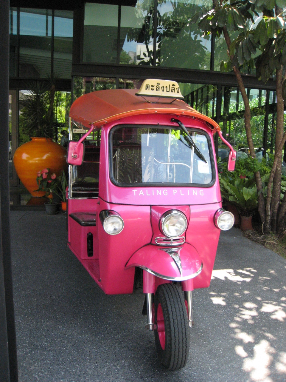 お店の入り口ではピンクのトゥクトゥクがお出迎えしてくれます。