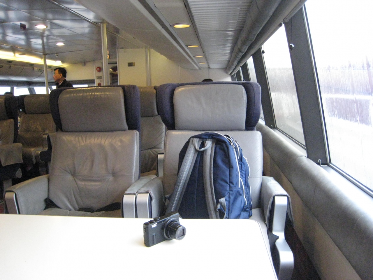 ターボジェットにファーストクラスがあったので、乗ってみました。ふつうの席より、